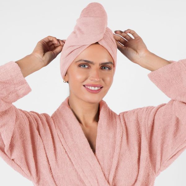 Schnelltrocknendes Haarhandtuch (2 Stk.) + weicher Bademantel Bundle GRATIS